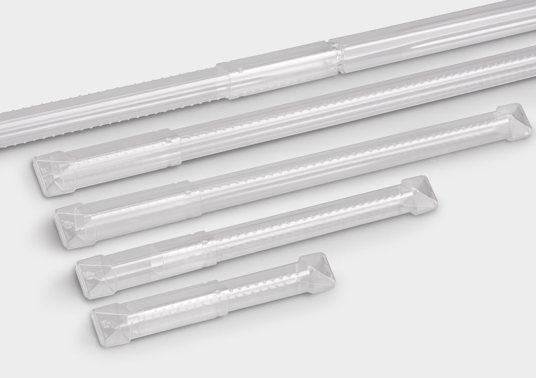 Our RectangularPack is also a suitable packaging solution for surgical instruments. With length adjustment via a stepless ratchet mechanism, this rectangular two-part tube can accommodate surgical instruments of various dimensions. As a packaging solution it’s easy to handle, stackable, space-saving, and a secure option for storage and transport of your products.